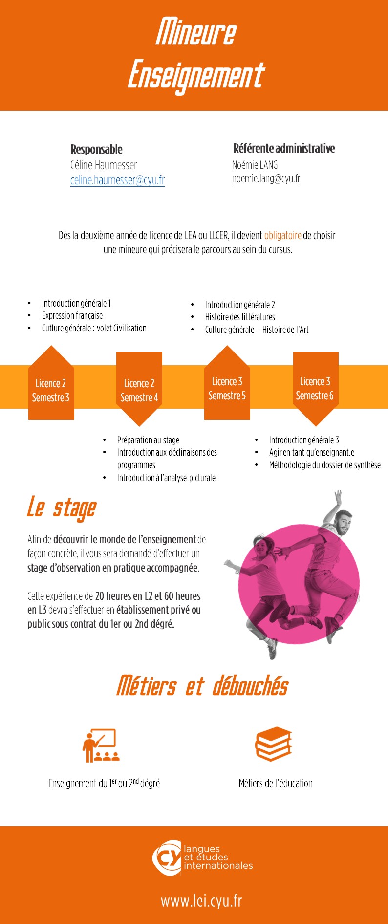Dès la deuxième année de la licence, quatre parcours professionnalisants sont proposés aux étudiantes et aux étudiants afin de peaufiner leurs aspirations professionnelles. Ces parcours sont en cohérence avec les masters proposés à CY Études internationales et interculturelles.